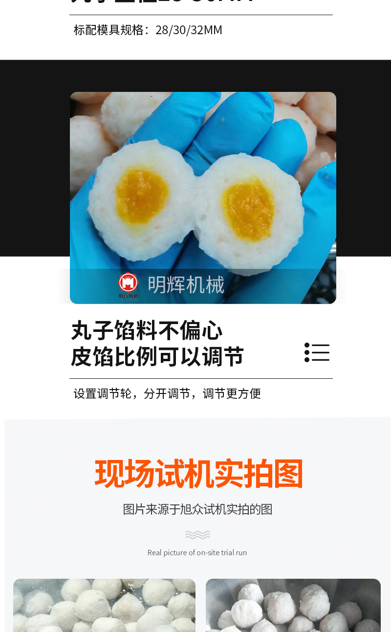 名稱XZ-609包心肉丸機 電源220V/380V 功率1.5kw 產(chǎn)量200-230個/min 尺寸730*540*1780mm 重量250kg 規(guī)格丸子直徑28-36mm 其他